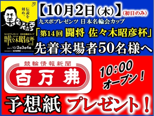 【10/2(木)~4(土)イベント&ファンサービス】九スポプレゼンツ/日本名輪会カップ「第14回 闘将 佐々木昭彦杯」