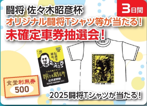 【3日間】佐々木昭彦杯オリジナルTシャツやQUOカード等が当たる未確定車券抽選会!