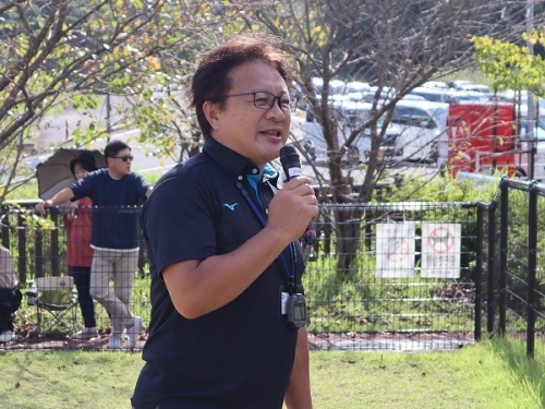第2回キックバイクレース開催は、主催者NKSSを代表して原 司さん(競輪選手会佐賀支部 支部長)の開会のご挨拶から始まりました