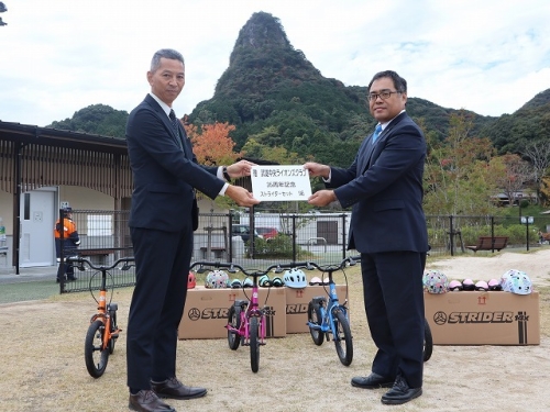 武雄中央ライオンズクラブ様より、結成35周年記念事業として、キックバイク5セットをご寄付いただきました。