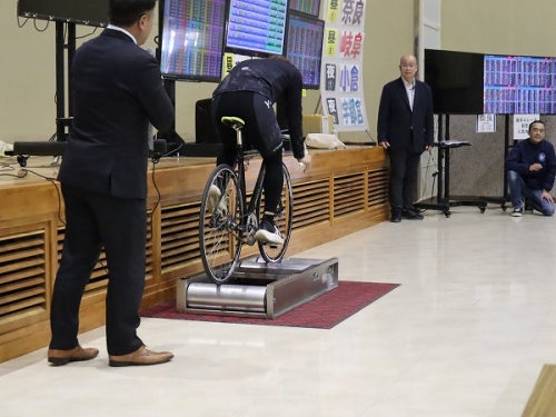 三本ローラー披露では、S級1班の山田庸平選手が競輪選手たちでも難しい逆乗り(前輪と後輪の位置)を披露してくれました。