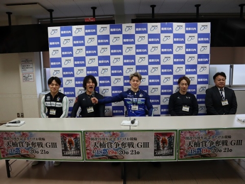 原 司支部長(70期)、山田庸平選手(94期)、立部楓真選手(115期)、坂田康季選手(121期)、橋本宇宙選手(123期)の5選手でした。