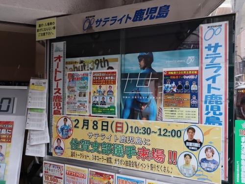 2月7日(土)8日(日)に競輪選手会佐賀支部の選手たちが鹿児島県にあります武雄競輪管轄サテライト「サテライト薩摩川内」「サテライト鹿児島」「サテライトみぞべ」の3場を訪問しイベント&ファンサービスPRツアーを行いました。