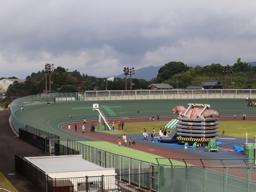 バンク(競走路)内には、ふわふわ巨大遊具のティラノサウルススライダーが設置され大人気となり