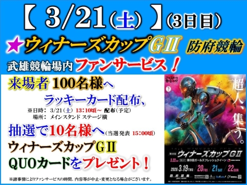 【場外発売ファンサービス!】3/21(土)ウィナーズカップGⅡ 防府(3日目)