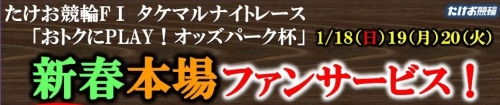 【1/18~20本場ファンサービス】タケマルナイトレース「おトクにPLAY!オッズパーク杯」FⅠ